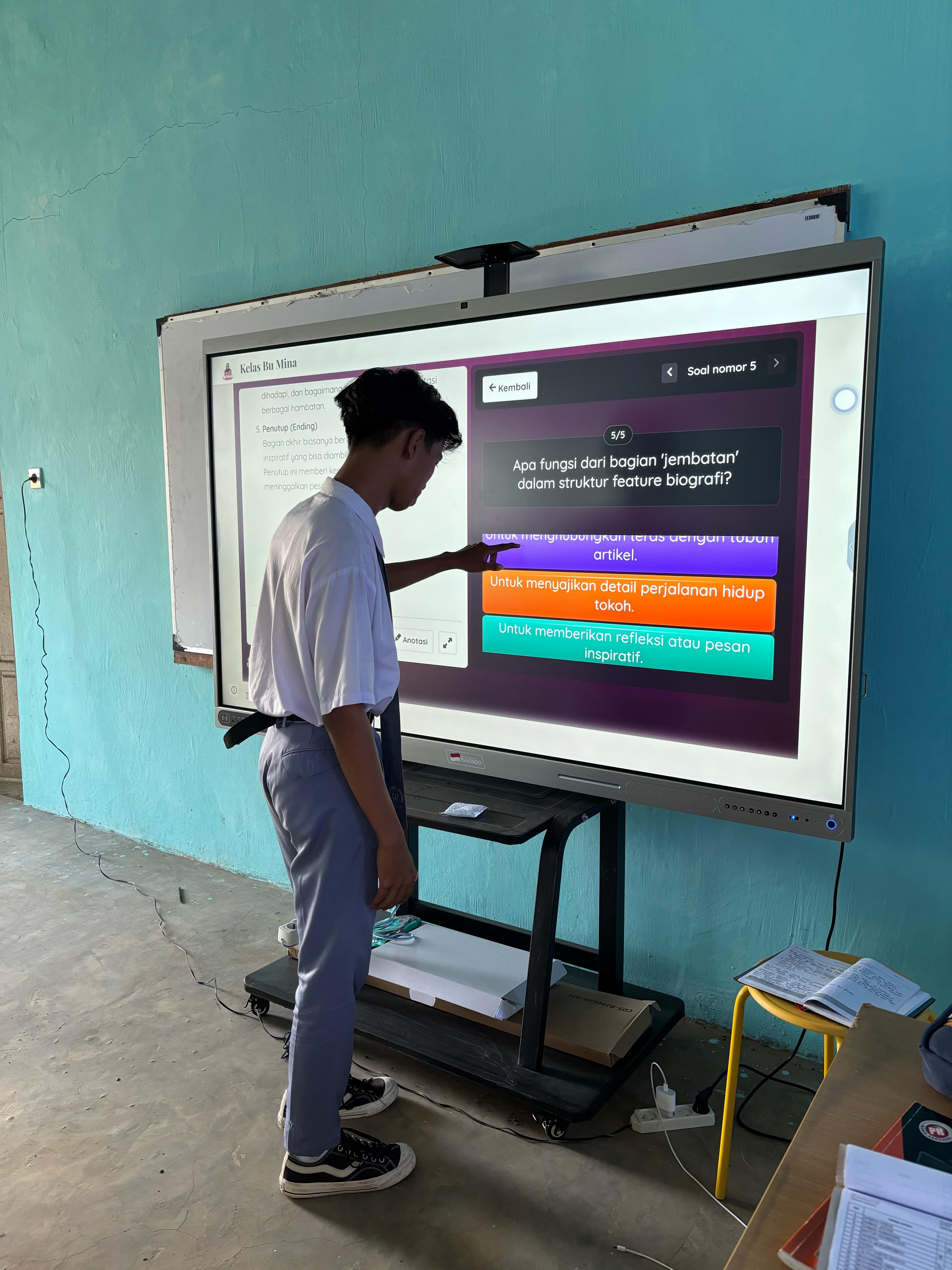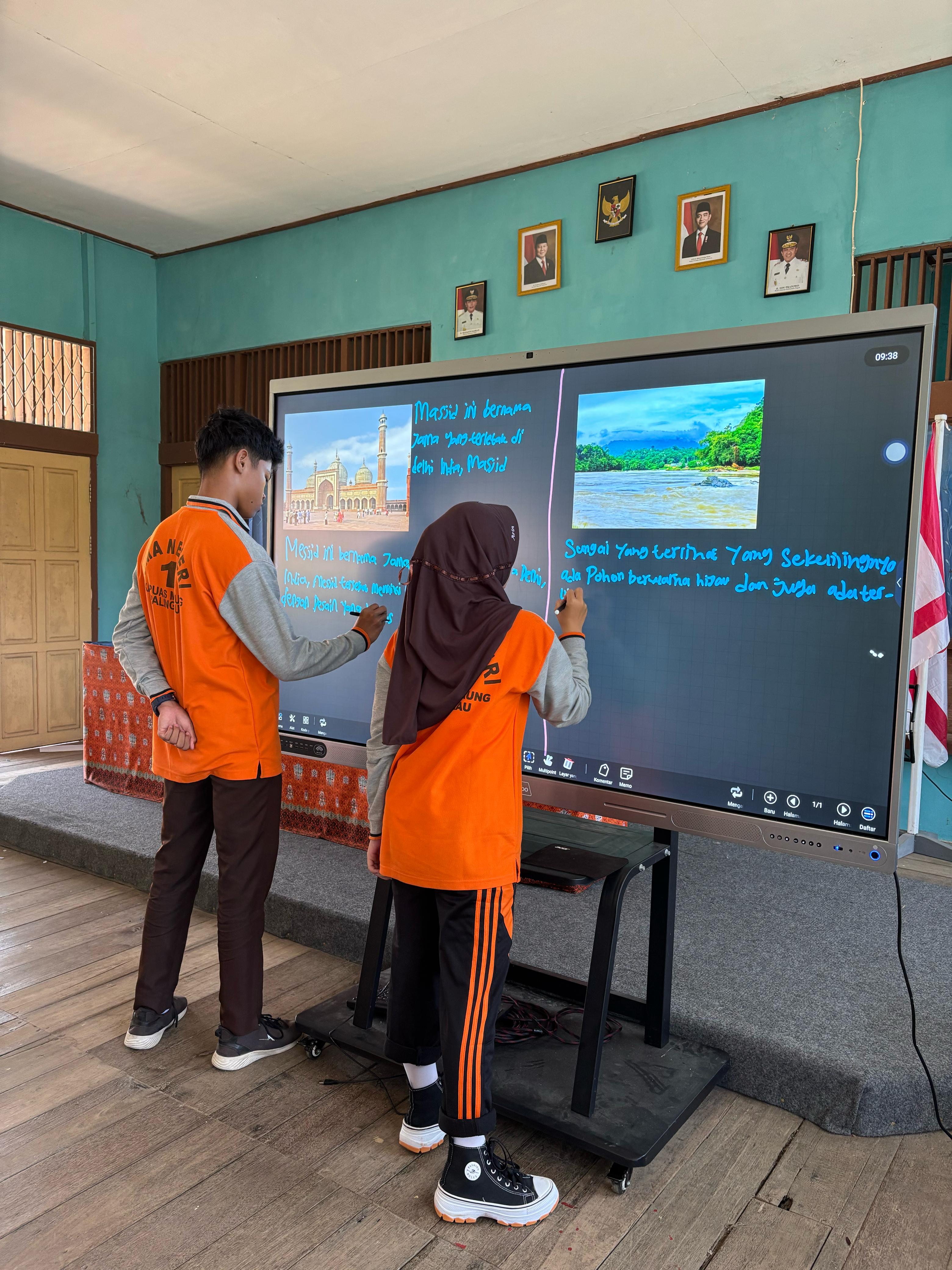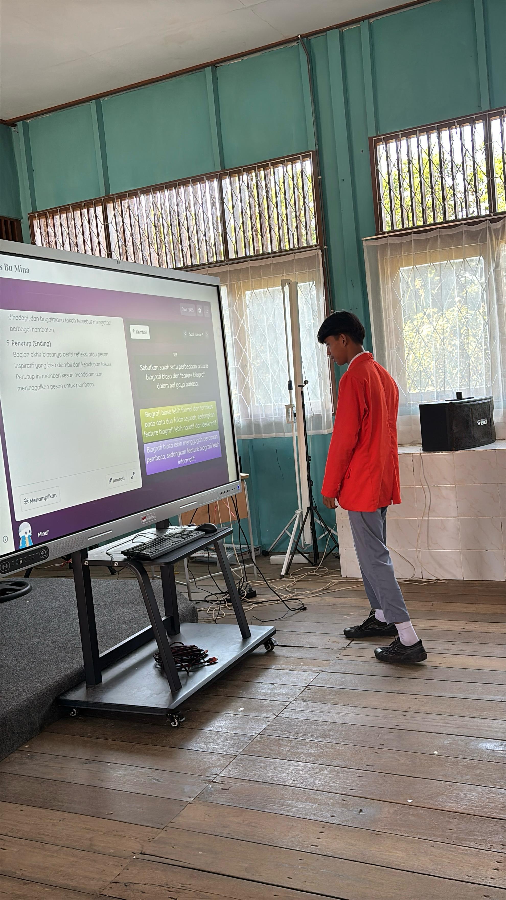 TV interaktif yang telah dipasang di beberapa ruang kelas ini memungkinkan guru dan siswa berinteraksi secara lebih dinamis dengan materi pelajaran melalui tampilan visual yang menarik, penggunaan aplikasi pembelajaran interaktif, serta akses langsung ke sumber belajar digital.